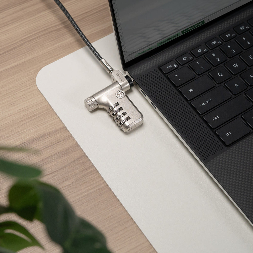 Grâce à une conception brevetée pour un ajustement sûr et universel, nous avons éliminé le besoin de têtes interchangeables. Avec un seul embout, ce verrou s'adapte à pratiquement toutes les fentes de verrouillage, y compris les fentes Kensington® Nano, Kensington K-Slot et les fentes de verrouillage surdimensionnées Noble® en forme de coin, ce qui en fait la solution idéale pour les environnements à appareils mixtes.